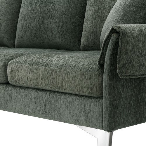 Fit up to four on this sleek sectional sofa, the perfect addition to any den or living room ensemble. Wrapped in Chenille upholstery, this sectional introduces a touch of texture to your interior design, while chromed metal legs round out this piece with a nod to contemporary style. High-density foam cushions give this sectional its medium firmness.