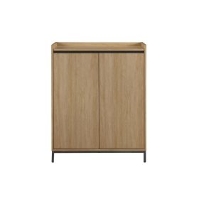 Pamplona Microwave Tall Cabinet Counter Surface, Top And Lower Double Doors Cabinets -Light Oak / White