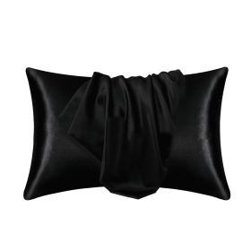 Pillowcase Satin Solid Color Simulation Silk Single Pillowcase Ice Silk Pillowcase (Flower Pattern: black)