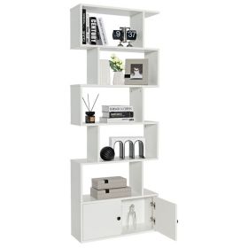 6-Tier S-Shaped Freestanding Bookshelf with Cabinet and Doors (Color: White)